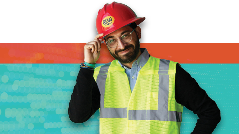 fiber logo in front of man wearing a bpw construction hat and a safety vest